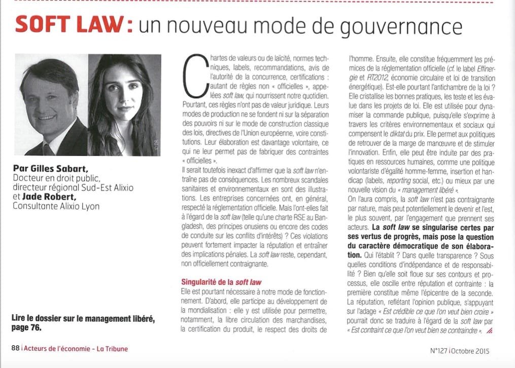 Il serait toutefois inexact d’affirmer que la soft law n’entraîne pas de conséquences. Les nombreux scandales sanitaires et environnementaux en sont des illustrations. Les entreprises concernées ont, en général, respecté la réglementation officielle mais l’ont-elles fait à l’égard de la soft law (telle qu’une charte RSE au Bangladesh, des principes onusiens ou encore des codes de conduite sur les conflits d’intérêts) ? Ces violations de la soft law peuvent fortement impacter la réputation et entraîner des implications pénales. La soft law reste, cependant, non officiellement contraignante… mais elle est pourtant nécessaire à notre mode de fonctionnement actuel :